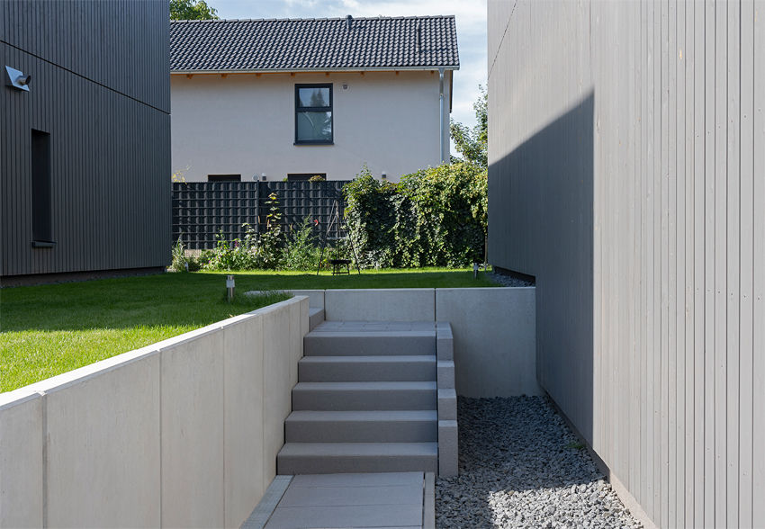 Die Bauelemente wurden durch Max Holzbau inklusive Fenster, Tür und Fassadenschalung im Werk vorgefertigt und in wenigen Tagen auf der Baustelle zusammengefügt.
